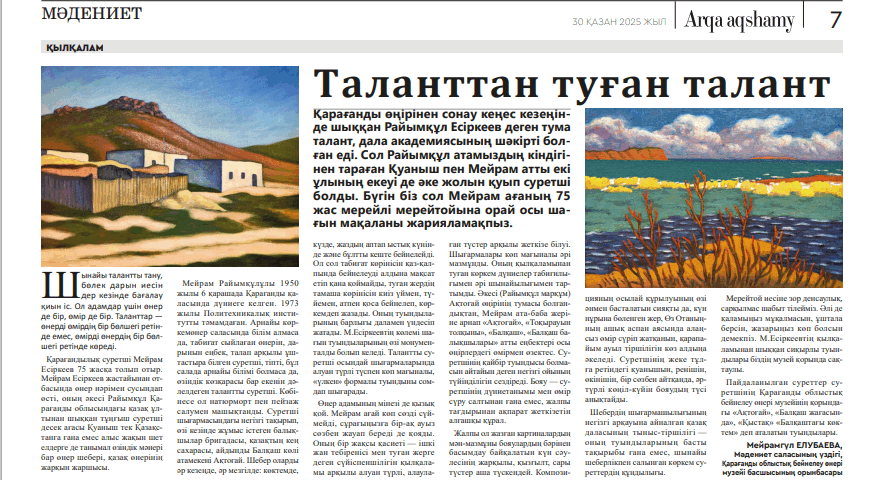 Граффити облыстық байқау «Тәуелсіздік символдары»06.09.2025 Таланттан туған талант Share admin Related posts14.08.2025Абай бейнесі — бейнелеу өнеріндеRead more Добавить комментарий Отменить ответВаш адрес email не будет опубликован. Обязательные поля помечены *Комментарий * Имя * Email * Сайт Сохранить моё имя, email и адрес сайта в этом браузере для последующих моих комментариев.